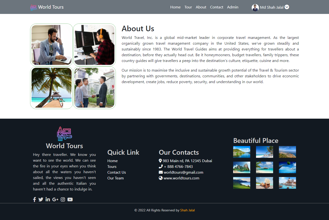 - Made it easy for a user could book a tour by placing his details. He also could add a unique journey.